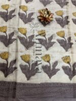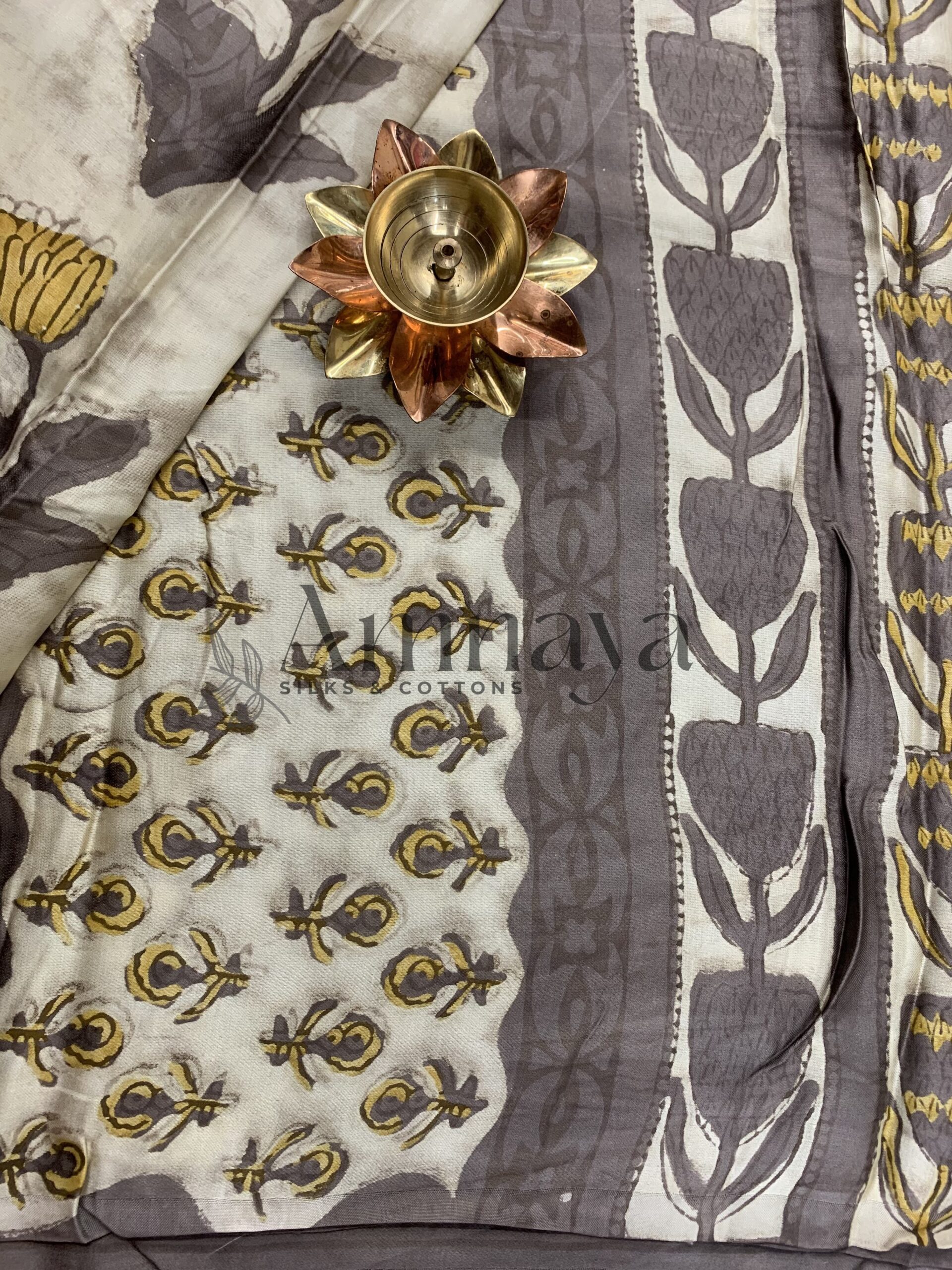 Elevate your ethnic elegance with this Beige Dabu Modal Silk Saree, featuring traditional floral block prints in warm mustard and earthy brown tones. Crafted from luxuriously soft Modal Silk, it drapes beautifully and offers all-day comfort. Perfect for festive gatherings, office wear, or cultural occasions.