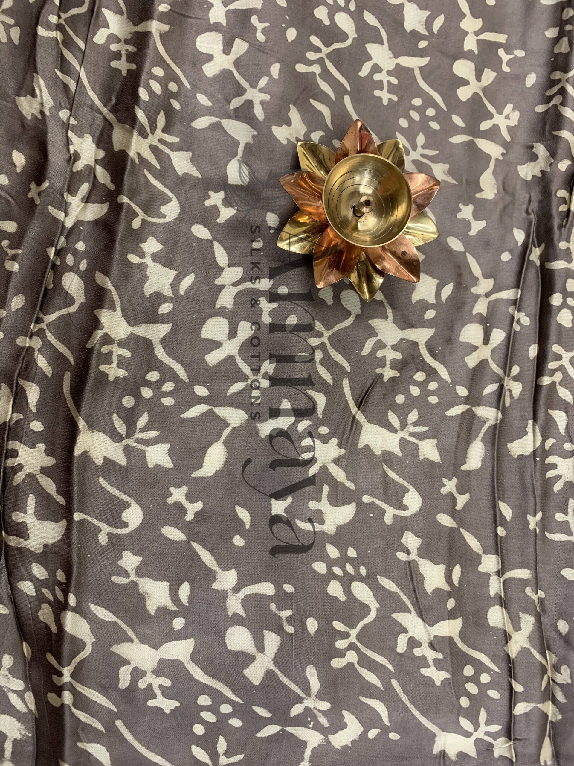 Made from premium Modal Silk, the saree is exceptionally soft, lightweight, and fluid, ensuring a graceful drape that flatters every body type. The subtle earthy border enhances its aesthetic, making it a perfect blend of tradition and contemporary style.