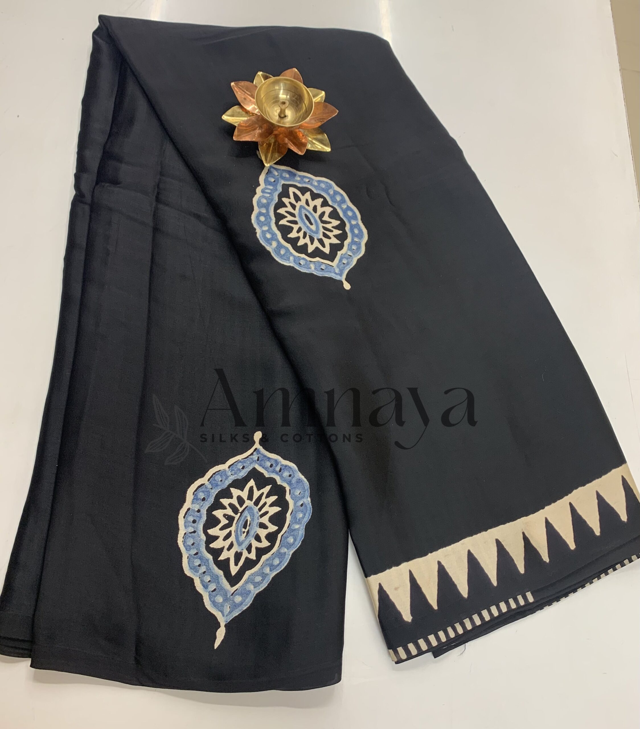 Introducing the Black Modal Silk Saree, a masterpiece that blends tradition with timeless elegance. Crafted from premium Modal Silk, this saree offers an exceptionally soft, smooth, and breathable drape with a natural sheen that enhances its luxurious feel.