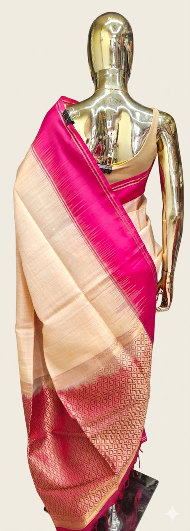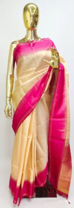 Cream and Pink Kanjivaram Silk Saree,