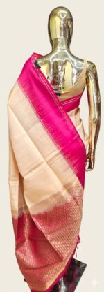 The bright pink border produces a lovely, vivid contrast that is highly favored for festive and bridal wear, while the cream or ivory body offers a delicate, elegant background.