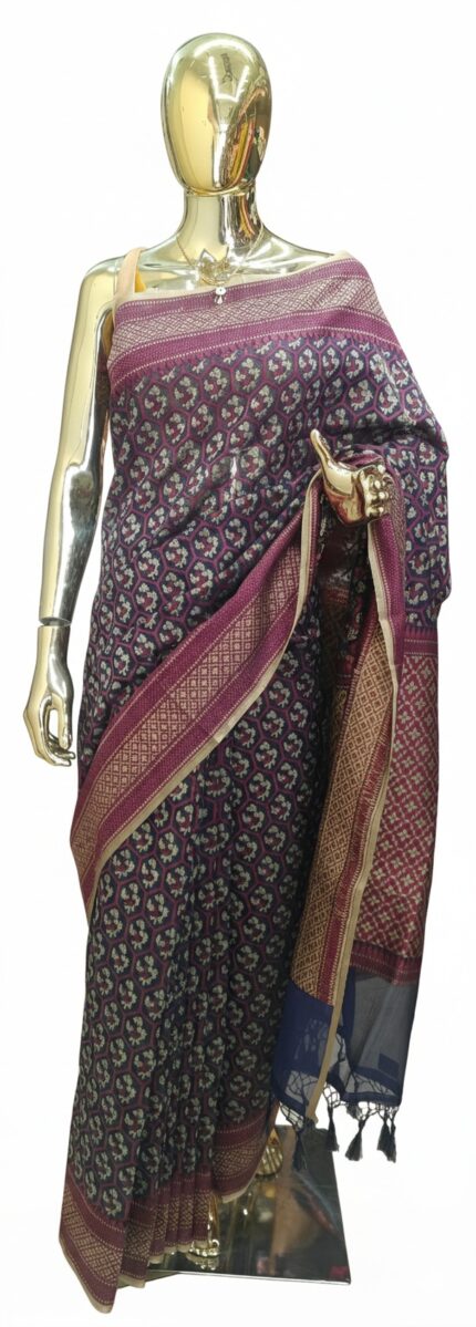 This saree is a beautiful blend of traditional Rajasthani artistry and modern textile elegance.