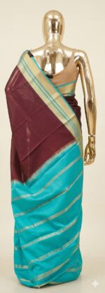The saree comes with the Contrast Seagreen blouse.