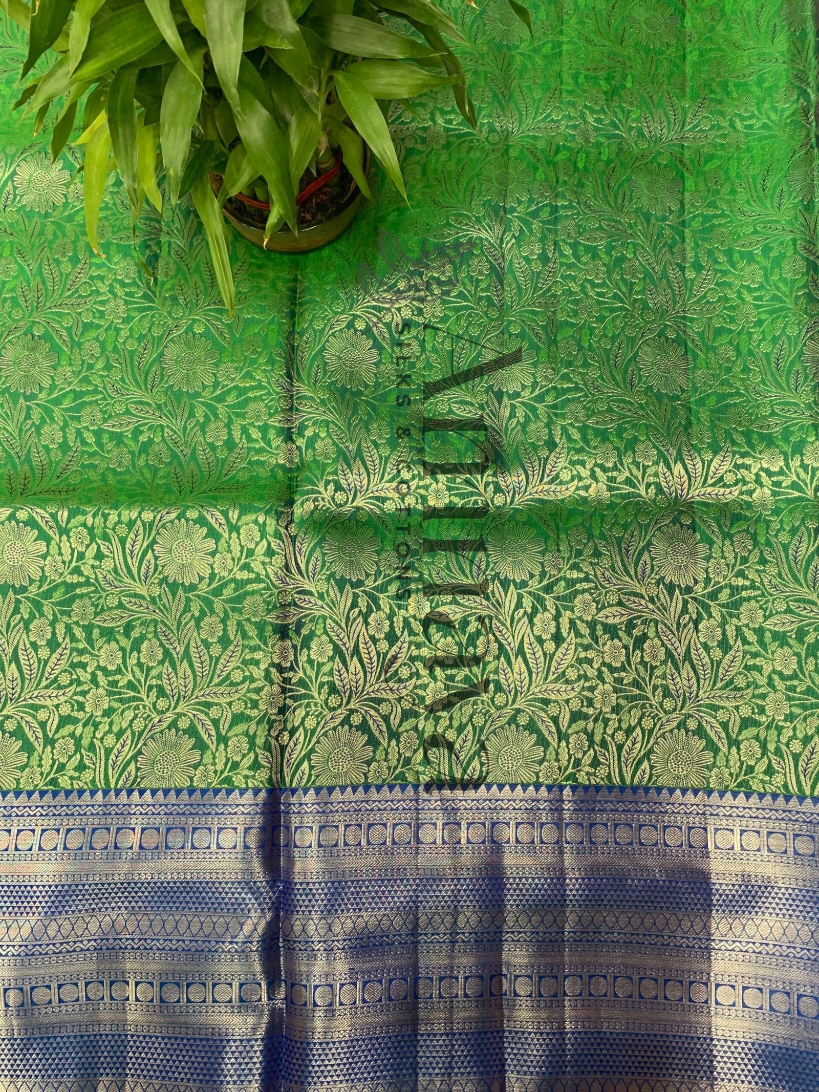 Color: Emerald Green with Royal Blue Silver Zari Border