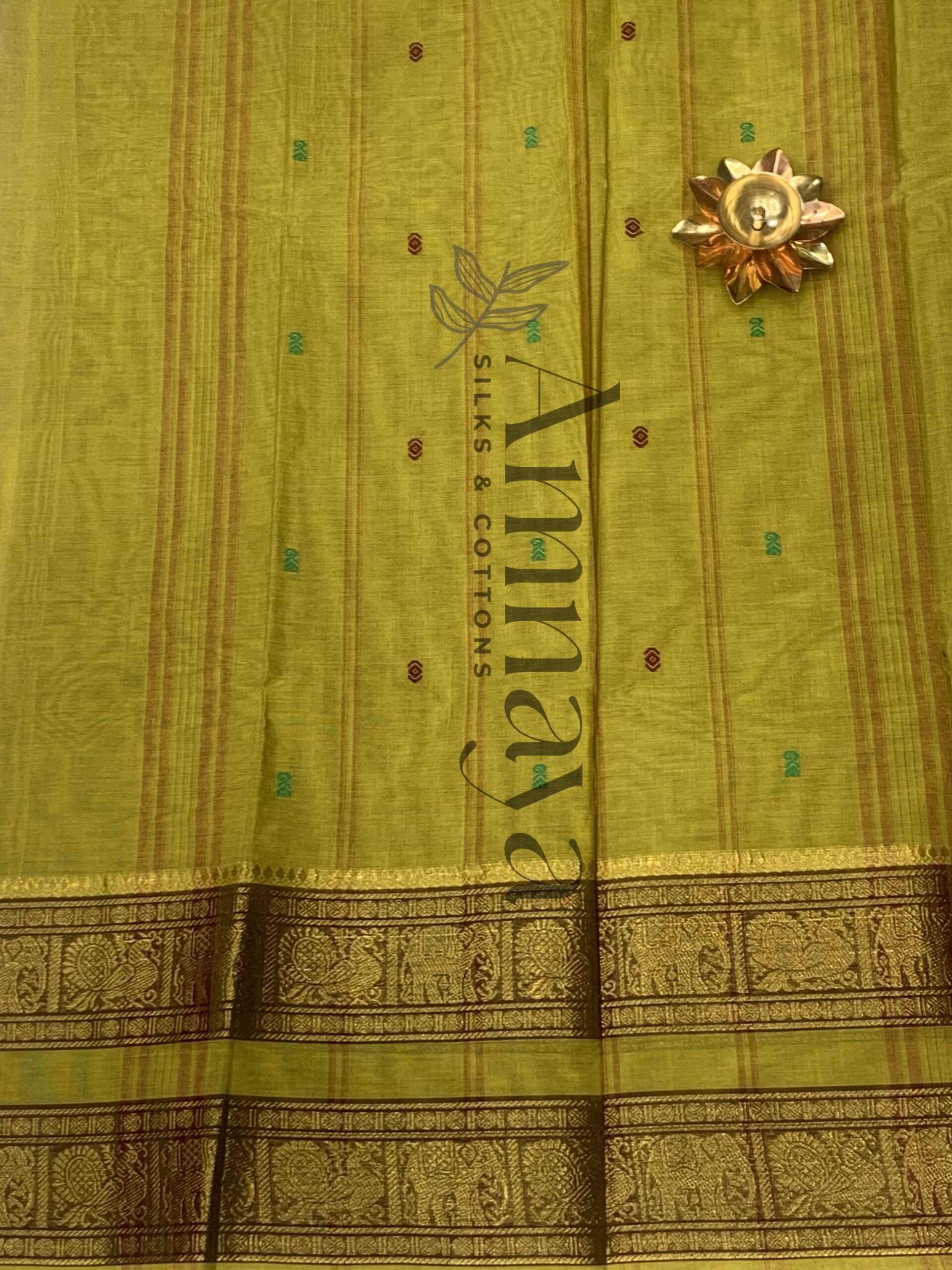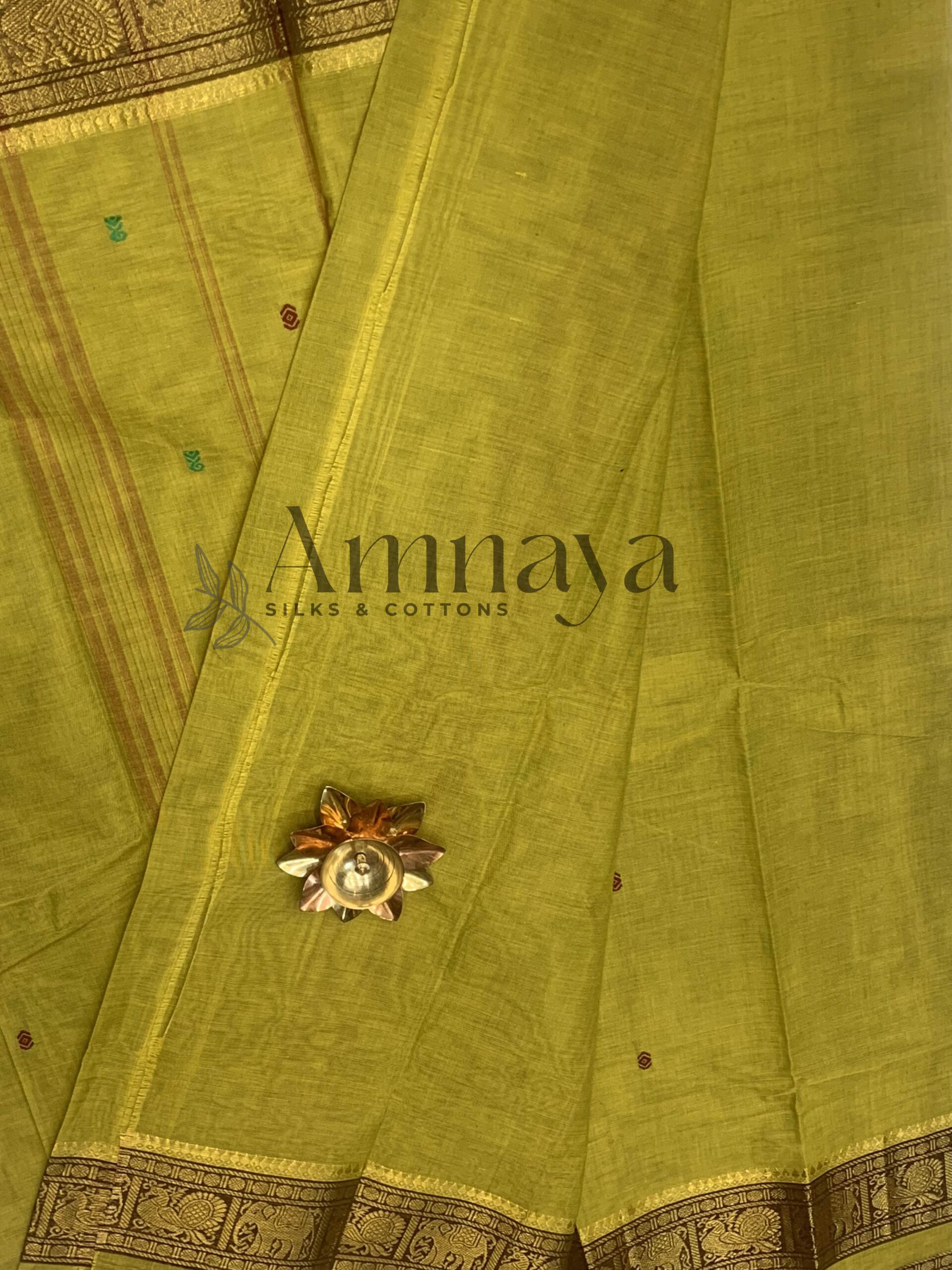 • Rich Gold Zari Woven Border with Elephant Motifs