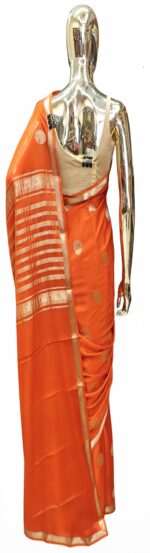 Description: Orange Crepe Pure silk saree