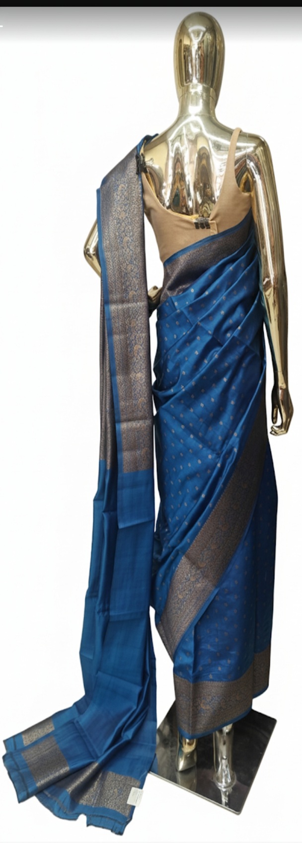 Peacock Blue Banarasi Chiniya Handloom Silk saree