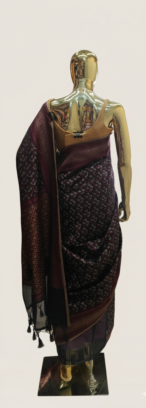 Dark Chocolate Brown Cotton saree ₹1,200.00