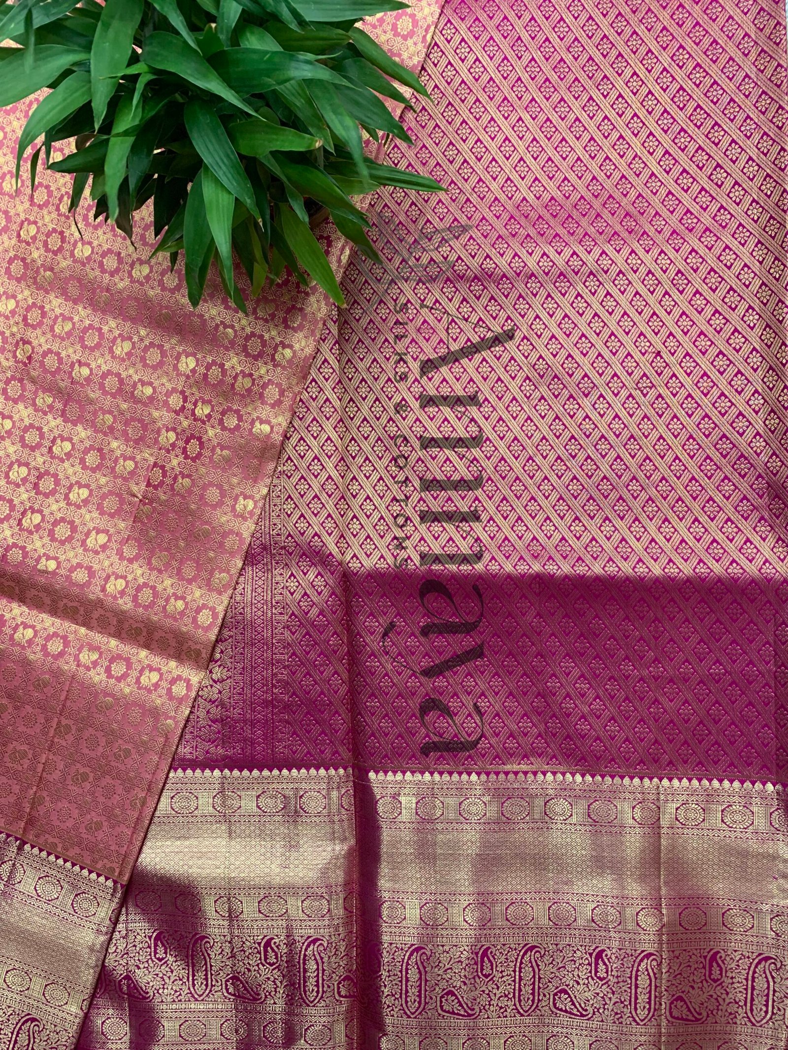 Color: Salmon Pink with Golden Zari Weave