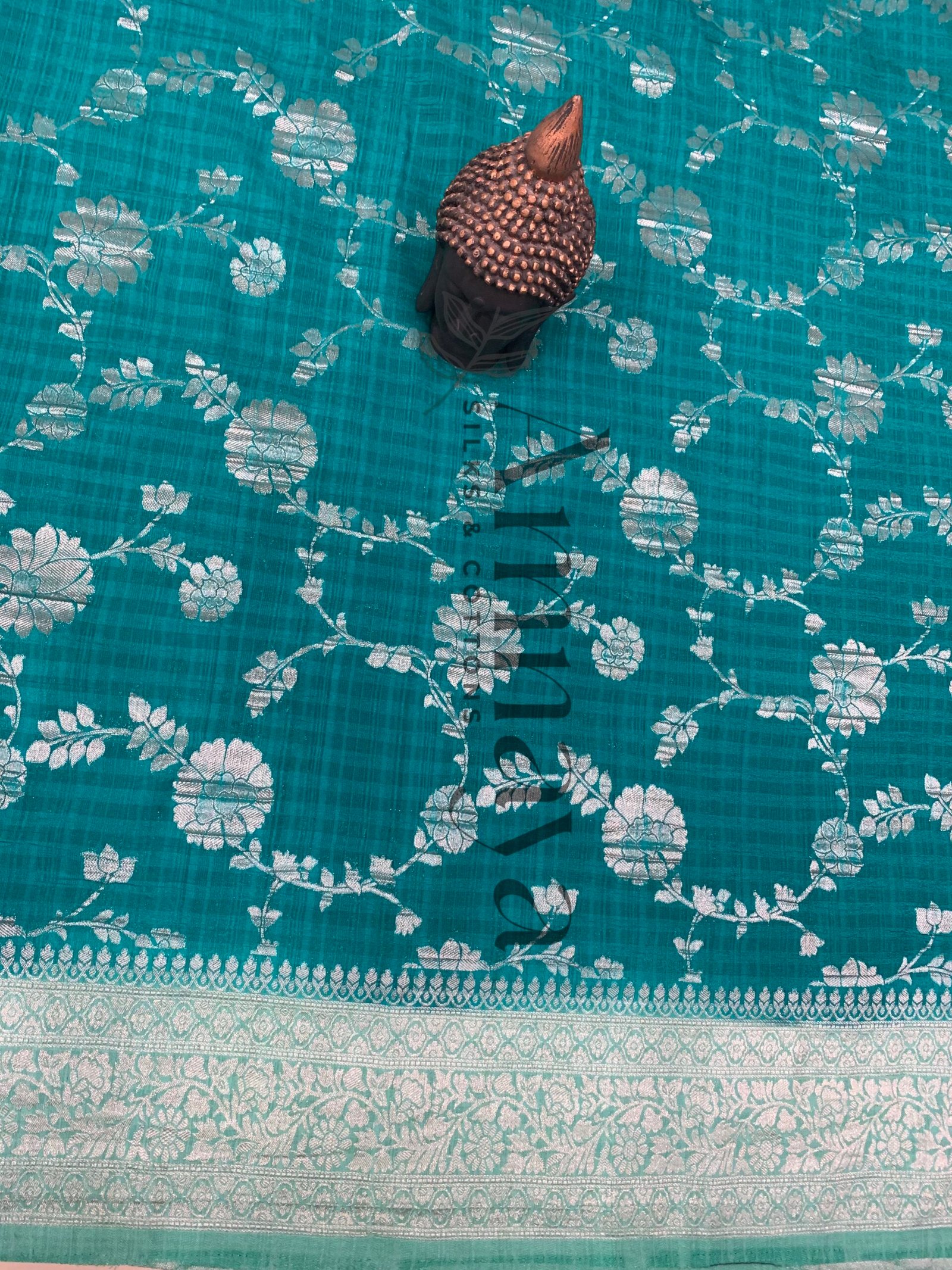 • Border: Intricate Silver Zari Floral Border