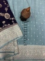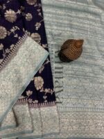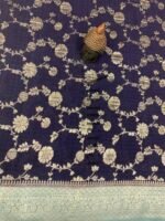 Its deep navy hue exudes regality, complemented by intricate woven detailing that highlights the rich cultural heritage of Banaras. Whether you’re attending a wedding, festival, or family celebration, this saree makes a lasting impression with its elegant texture and graceful flow.